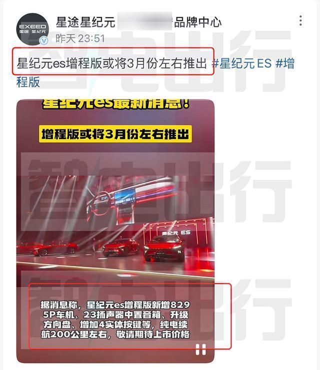 星途星纪元品牌中心表示,星纪元ES增程版或将3月份左右推出。新车1.5T增程器最大功率115kW,增8295P车机、23扬声器中置音箱,方形盘增加实体按键。
