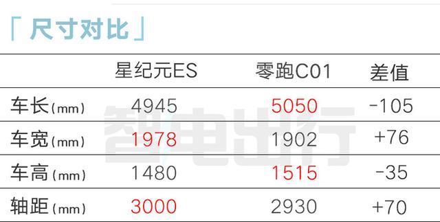 星纪元ES增程的车宽和轴距比零跑C01更大。车内将搭载纯电版同款8.2英寸全液晶仪表+15.6英寸2.5K中控屏、麂皮顶棚、W-HUD、手机无线双充等。